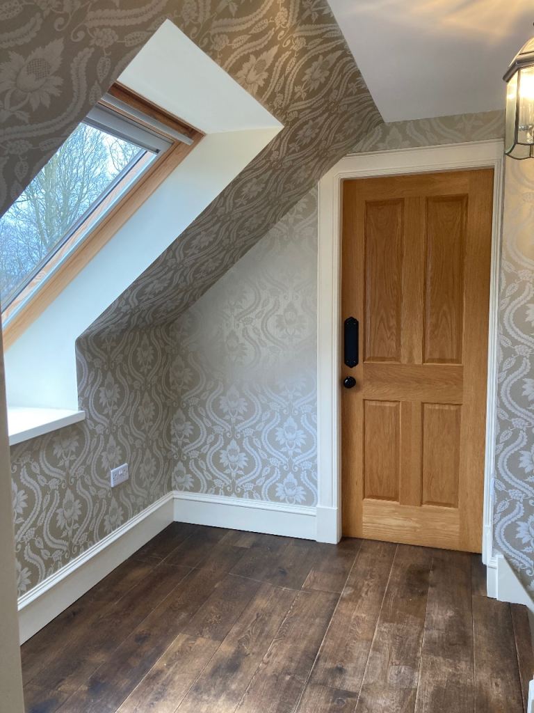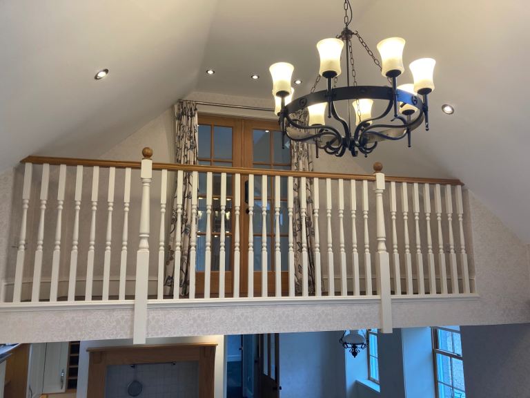 Ground floor: large open plan lounge with vaulted ceiling with balcony overlooking lounge with wood burning stove, kitchen (with range cooker, fridges & dishwasher), dining area, utility room (with freezer, washing machine & drier), entrance vestibule (with storage cupboard), hallway/ stairs, main bathroom (with walk in shower), ground-floor bedroom with ensuite (shower over bath).