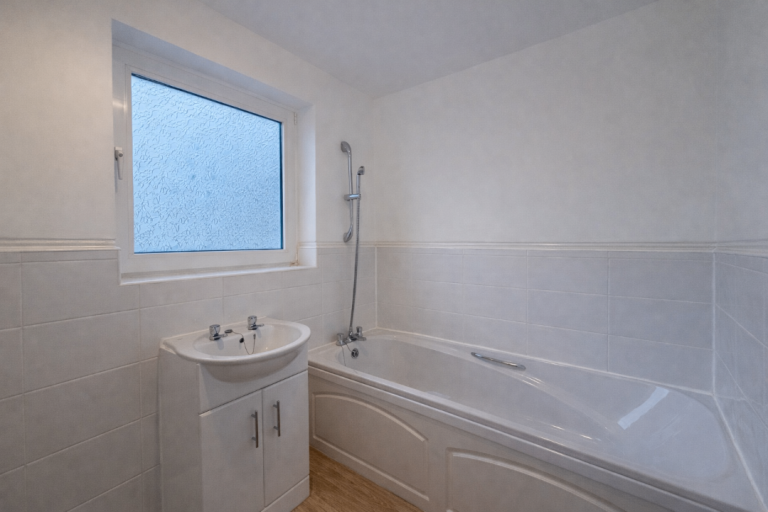 - Bathroom 1 - Wash basin, bath, wall-mounted shower fittings.