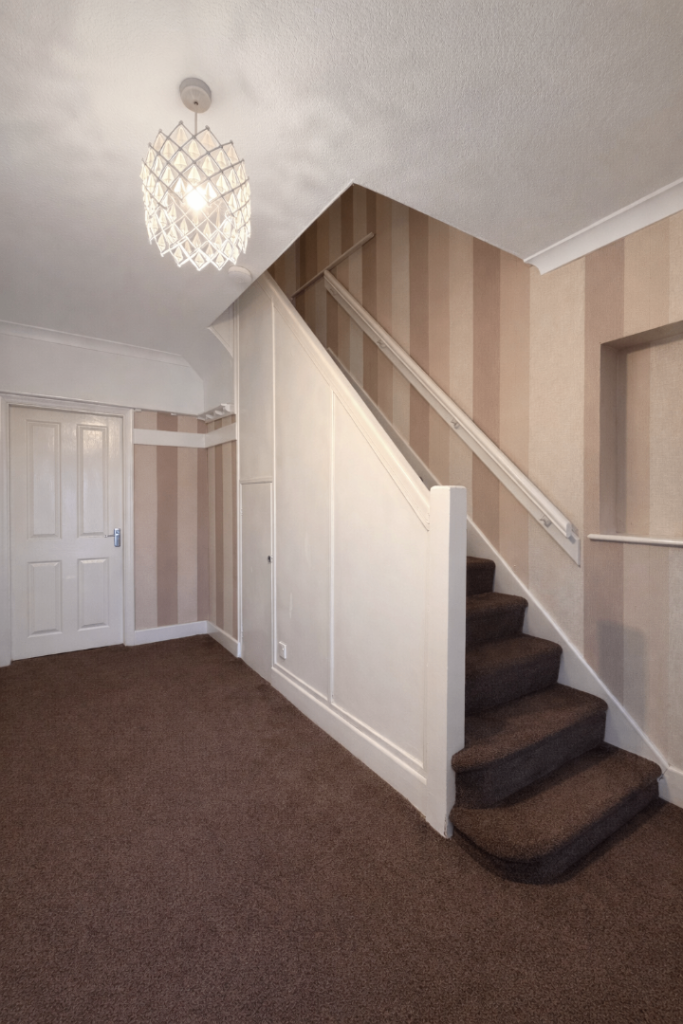 - Entrance - Entrance porch followed by large hallway with gas central heating and under stairs storage cupboard.