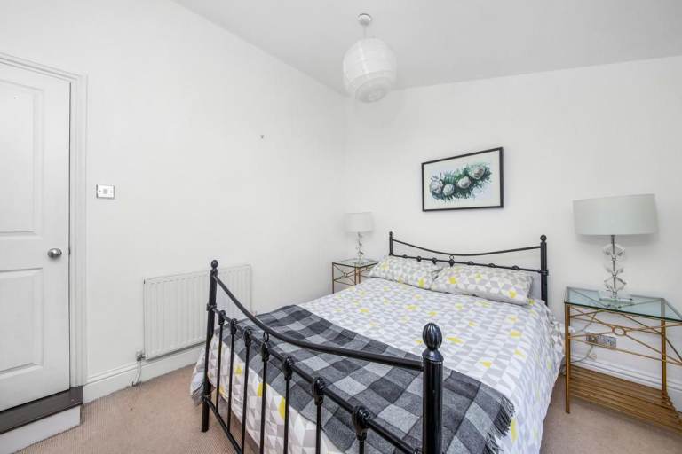 Lovely, sunny, and quiet double room at the back of the house with its own southwest access to the garden and a patio in a 3-bed property. Recently redecorated with new carpet.