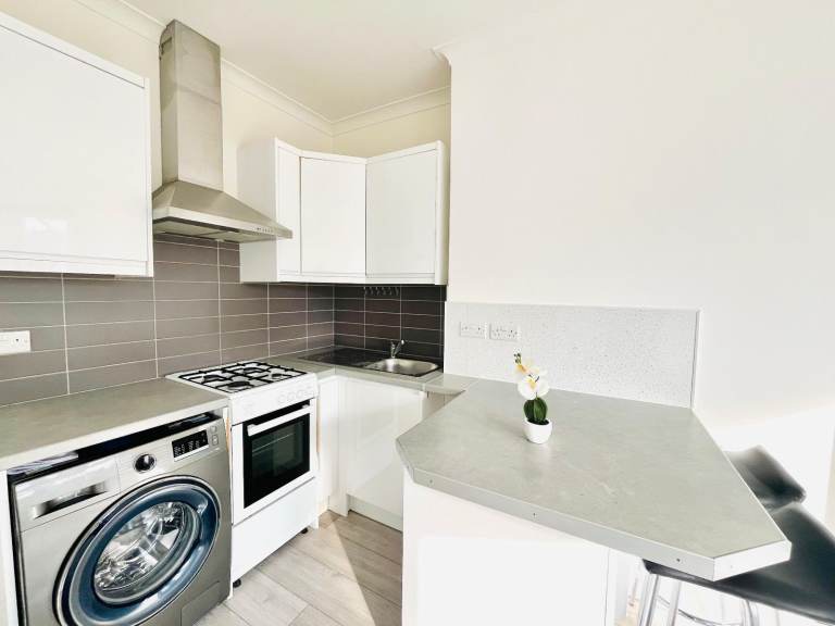 This newly refurbished property comprises of a bright spacious double bedroom with large windows and ample storage space, an open plan kitchen/living room with washing machine, gas cooker, extractor fan and storage, a fully tiled modern bathroom with shower, built in storage, chrome fittings and a heated towel rail.