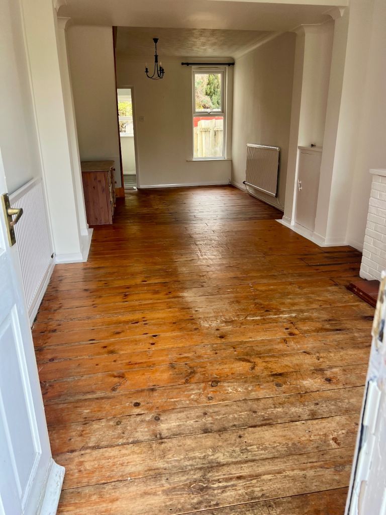 Wooden floors . Open plan lounge diner.