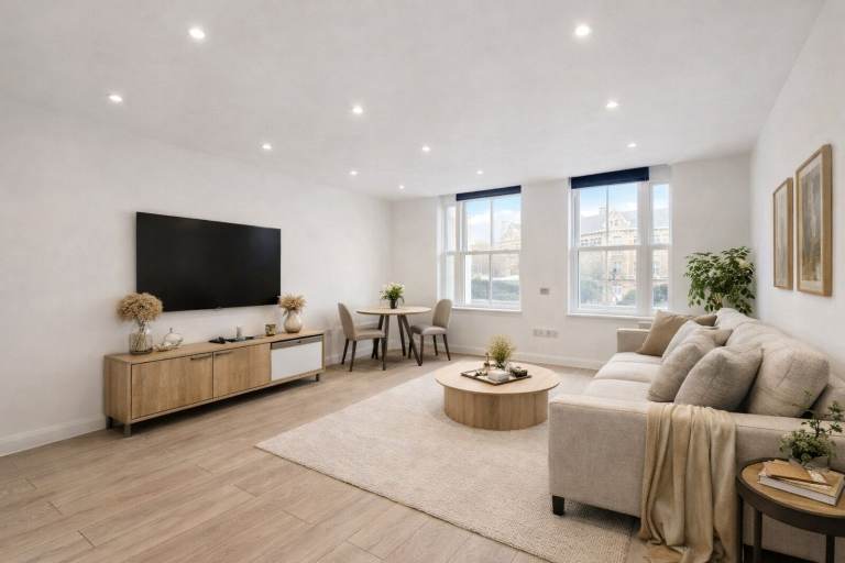One bedroom unfurnished flat comfortable living space throughout and comprises of a Spacious Double Bedroom boasting natural lighting and ample storage space, a stylish Reception Room with open plan Kitchen with integrated appliances and a newly tiled Bathroom. Further benefits from stunning new Double-Glazed Sash Windows, Wooden Flooring Throughout, Contemporary Interior Designs with High Quality Spec to create comfortable living space.