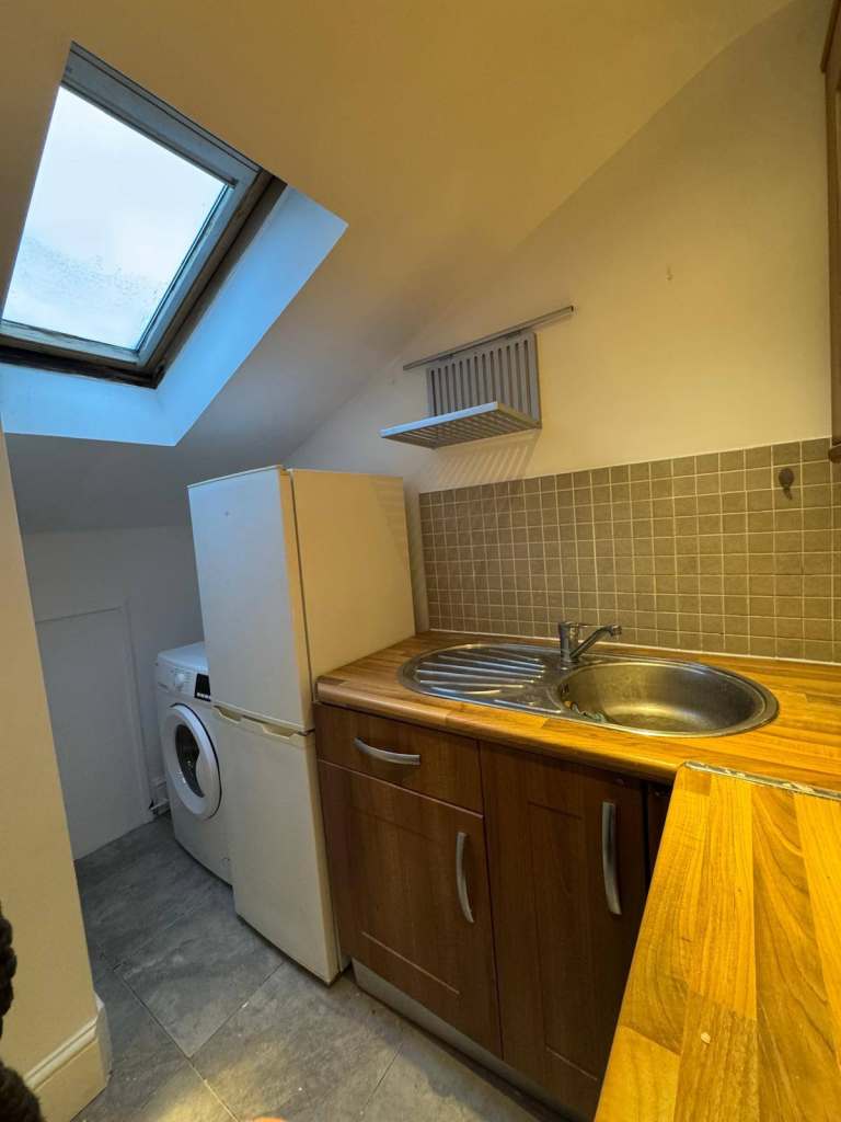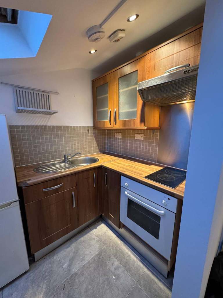 it is a split level flat which is separated between the kitchen ,bathroom and bedroom, sitting room with three stairs .