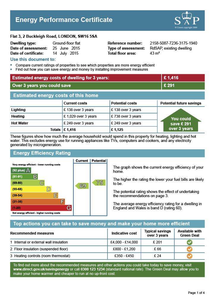 EPC rating is C so the flat will have lower energy bills than the majority of flats in London
