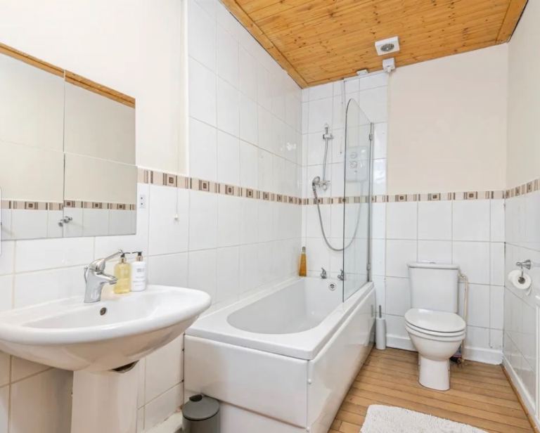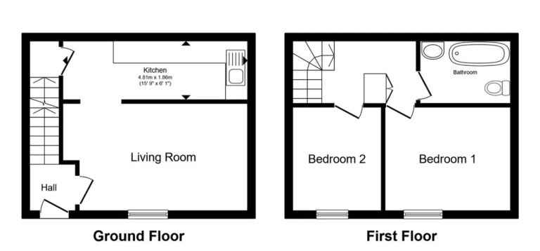 On entering the property, you step into a welcoming living room with a warm, practical layout, offering a pleasant space to relax. The kitchen is positioned to the rear and has been updated with tasteful units and worktops, providing good storage and preparation space while maintaining a classic, functional design.Upstairs, the property offers two well-proportioned bedrooms, both benefiting from natural light and flexible layouts suitable for bedroom use, guest accommodation, or a small home office. The first floor is completed by a bathroom fitted with a traditional-style suite, including a bath with overhead shower, wash basin, and WC, finished in neutral tones. Externally, there is a small garden area to the front of the property, offering a low-maintenance outdoor space that could be used for seating or planting, adding a pleasant feature to the frontage.