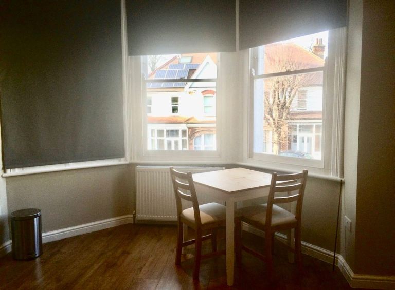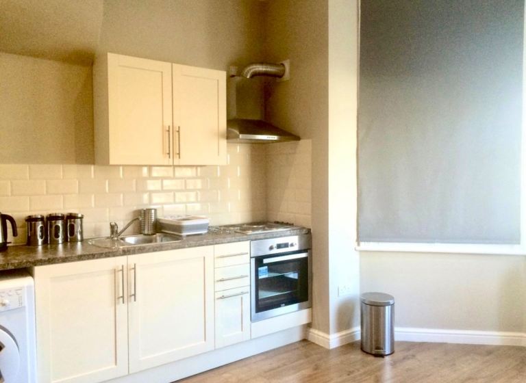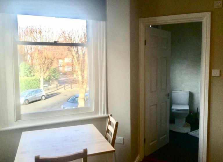 Studio - cooker, hob, sink, double bed, bathroom with shower and W.C. and washbasin, washing machine/dryer, fridge/freezer. Centrally heated. Wardrobe, chest of drawers and sofa. It is availbe for one professional person only. Non-smoker. Close to station, park and shops.