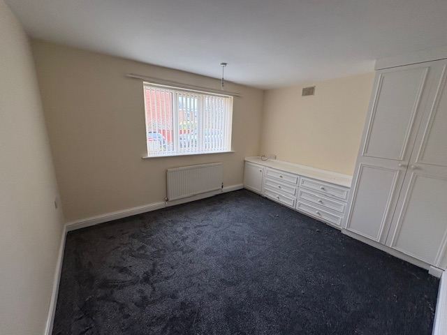 Bedroom, with built in wardrobes and drawers, new fitted carpet and decor.