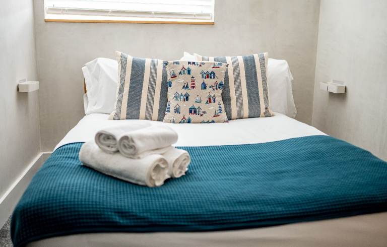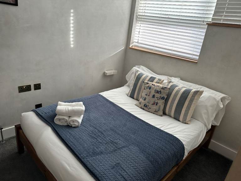 Bedroom 2: A smaller double bedroom with its own TV, suitable for guests or use as a study/sleeping space.