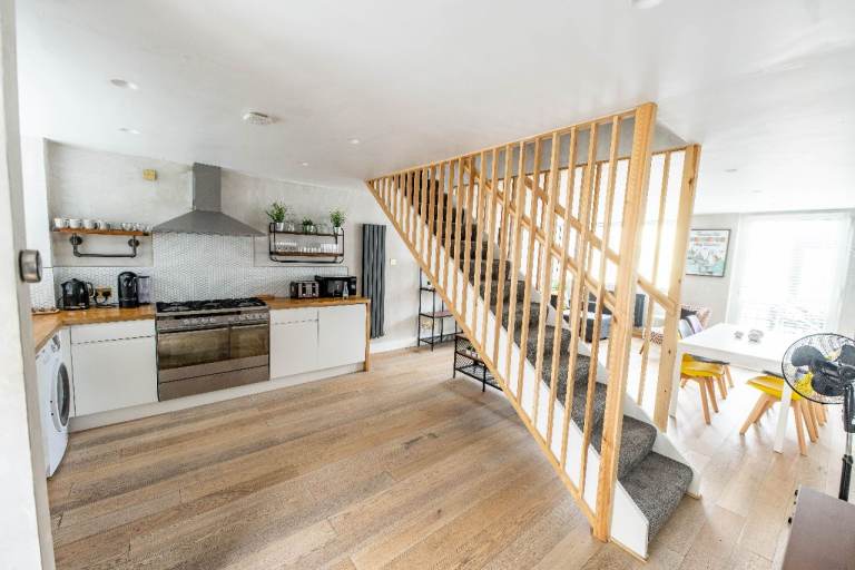 Upon entering the property, you are welcomed by characterful interiors including Venetian-style walls, attractive woodwork, and a blend of industrial and rustic design features.