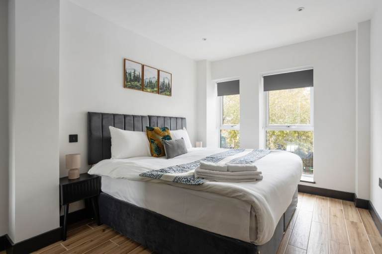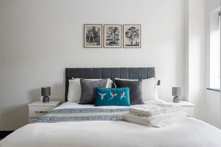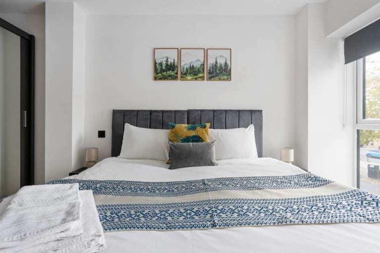 ⭐ 𝗦𝗽𝗮𝗰𝗶𝗼𝘂𝘀 & 𝗦𝘁𝘆𝗹𝗶𝘀𝗵 𝗕𝗲𝗱𝗿𝗼𝗼𝗺𝘀: 2 beautifully designed bedrooms with comfortable beds and fresh high-thread-count white linens for the perfect night's sleep.