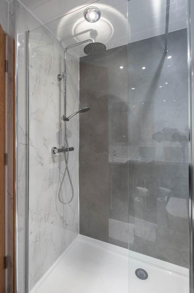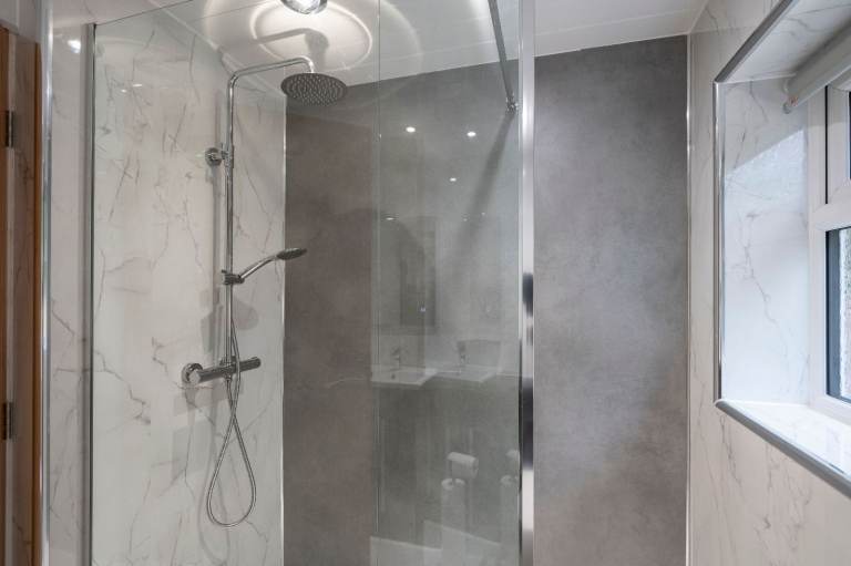 Upstairs Bathroom with a Walk-In Shower