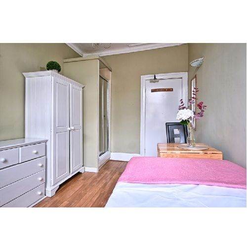 Furnished a bed, wardrobe, chest of drawers, dining table & chairs.