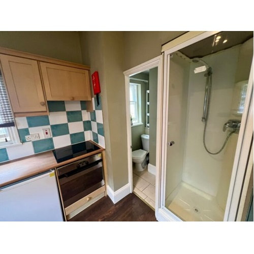Private bathroom with a shower, WC & wash basin.