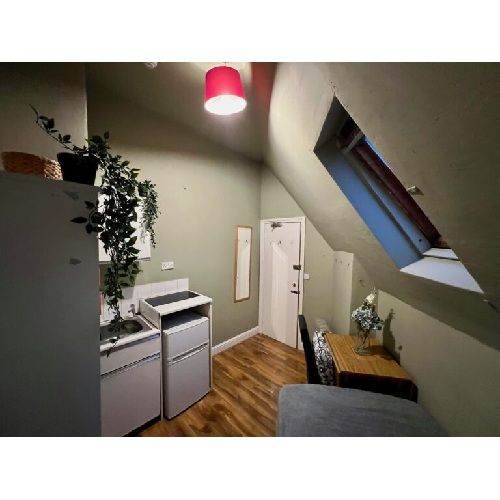 A studio/bedroom with a Velux window providing lots of natural light and ventilation.