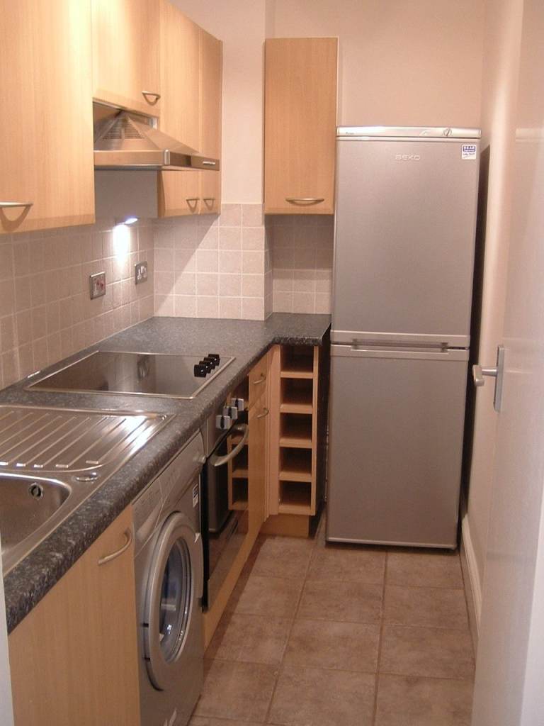 It has a separate, compact galley kitchen with fitted oven, hob, washing machine and new fridge-freezer.