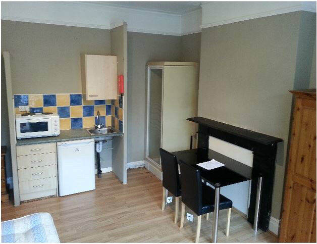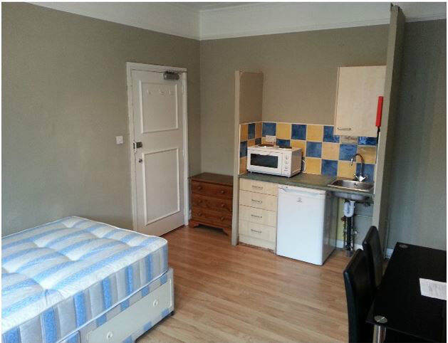 Nice large studio with own shower cubicle. Fully furnished close to shops and tube. Smart kitchen and w.c. shared with 2 or 3 others. Holland rd W14. C/tax incl/utilities ex.