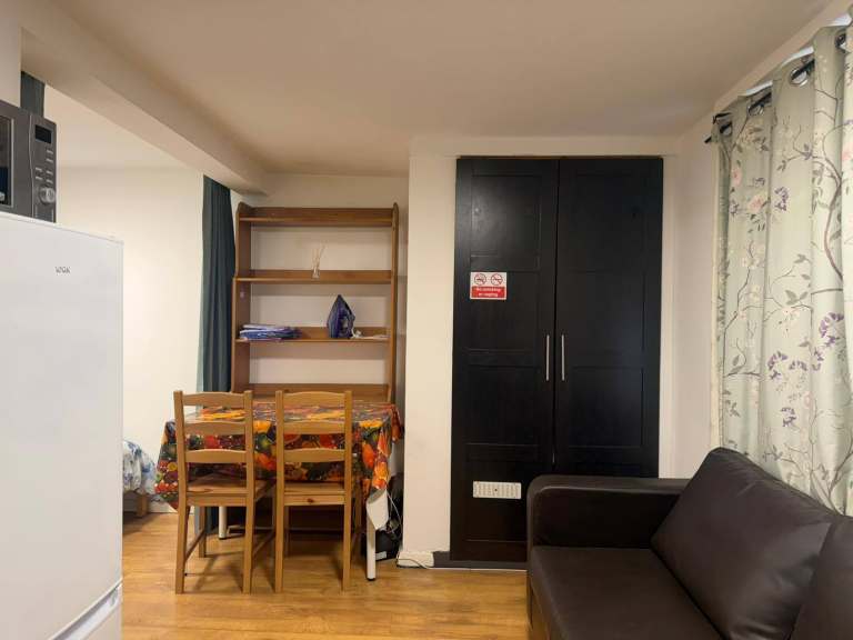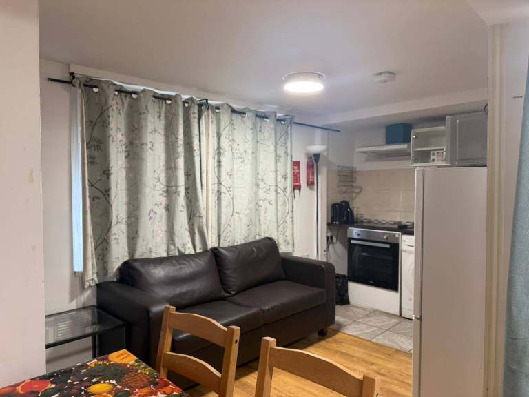 A well-presented and fully furnished ground-floor studio flat with access to a shared garden, available for immediate move-in.