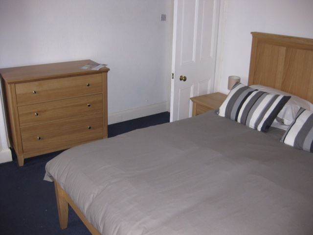 The bedroom is a generous double with large cupboard, side tables, drawers and feature fireplace. The accommodation is completed by a tiled bathroom and separate toilet.
