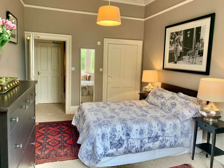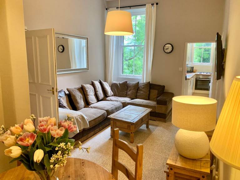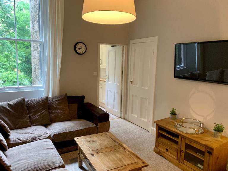 The apartment overlooks the Meadows, just 5 minutes walk to George Square. It is a 8 minute walk to the Grassmarket and 12 minutes to the Royal Mile and is a 15-minutes walk from Princes Street.