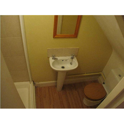 Separate bathroom with a shower, WC and wash-hand basin.