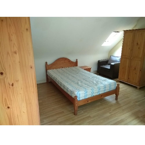Fully furnished with a double bed, bedside cabinets, wardrobe, leather easy chairs, dining table and chairs.