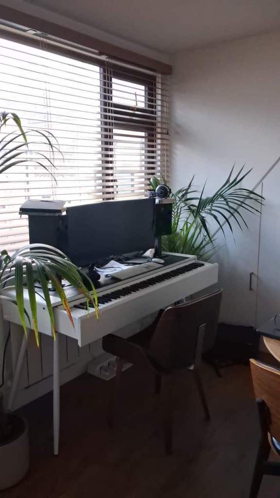 The studio is above an office on the ground floor, which operates from 10:00 am to 6:00 pm. The area and the building are very quiet and safe.