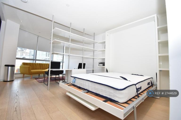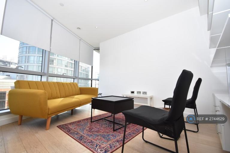This modern studio flat, available for long-term let, is located on the 11th floor of a residential block just minutes from Canary Wharf. The space is bright and airy, with large windows offering stunning views of the surrounding area and the river Thames. The flat comes equipped with a fully fitted kitchen, a folding bed that provides flexibility for both day and night use.