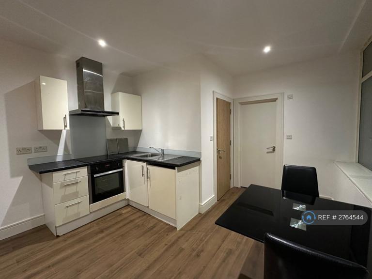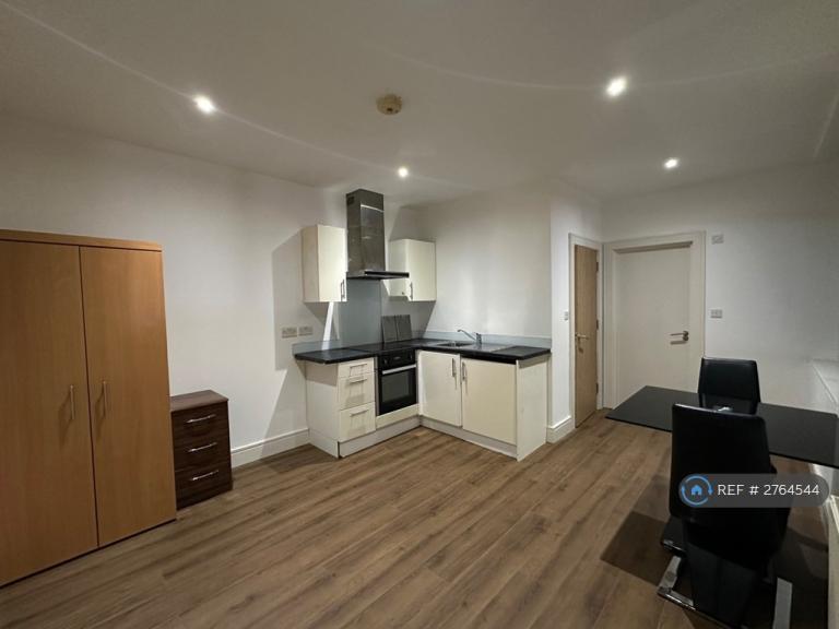 This modern studio Apartment features a spacious open plan living room with a fully fitted kitchen with integrated appliances and a modern bathroom.