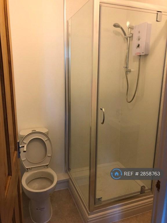 The flat also has its own bathroom comprising of a white china close couple WC a vanity sink with monobloc mixer tap with a vanity cupboard and a corner shower unit with electric shower.Â