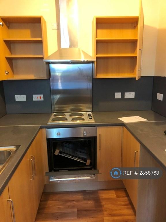 Very nice, newly built very comfortable first floor studio flat comprising of a good size living area with plenty of room for a bed (bed not provided) wood efect vynil flooring and and wooden window blind. It has a very well apointed fitted kitchen with both wall cupboards and base cupboards, fitted 4 plate electric hob and built in modern electric oven also ha ood style extractor fan, plumbing for washing machine., stainless steel sink with monobloc tap.Â