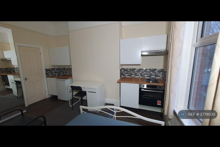 We are proud to offer this delightful 1 bedroom, 1 bathroom apartment in a great location for all amenities. This is a spacious studio with kitchenette, hob and oven. Fridge freezer, cupboards, food preparation and hot drinks area. It would suit mature student leaving university accommodation or someone working in Derby city centre. On the middle floor at the rear. There is access to a shared garden through an extra kitchen. Washing machines are in another shared kitchen with gas oven. Smoking is allowed in the adjacent garden.