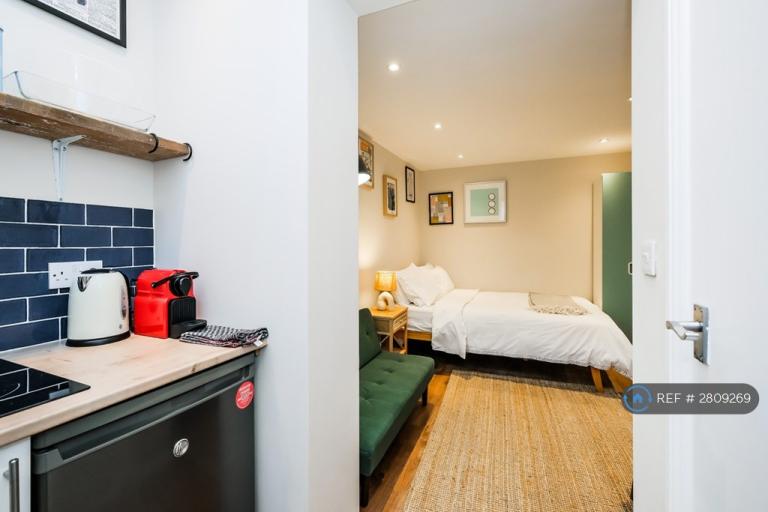 Larger Studio flat with separate private entrance and atrium/dining nook, just been refurbished to a high spec. Separate Kitchen space, and Shower Room