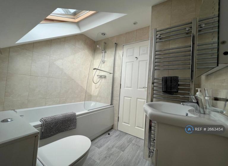 Full bathroom with bath/powerful shower/heated towel rail/LED mirror with demister