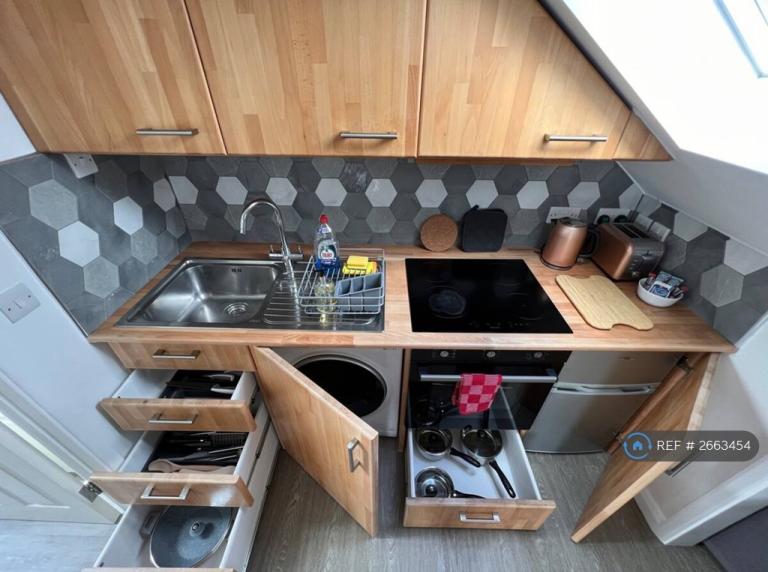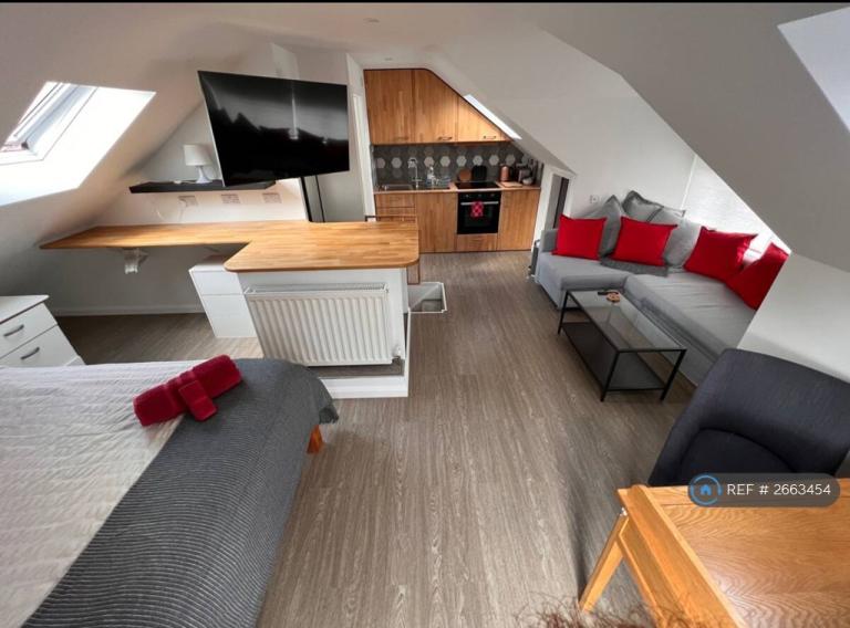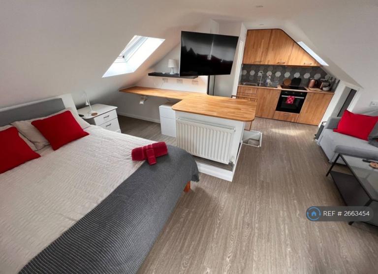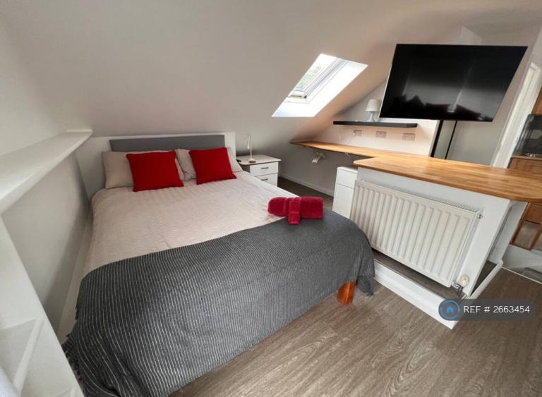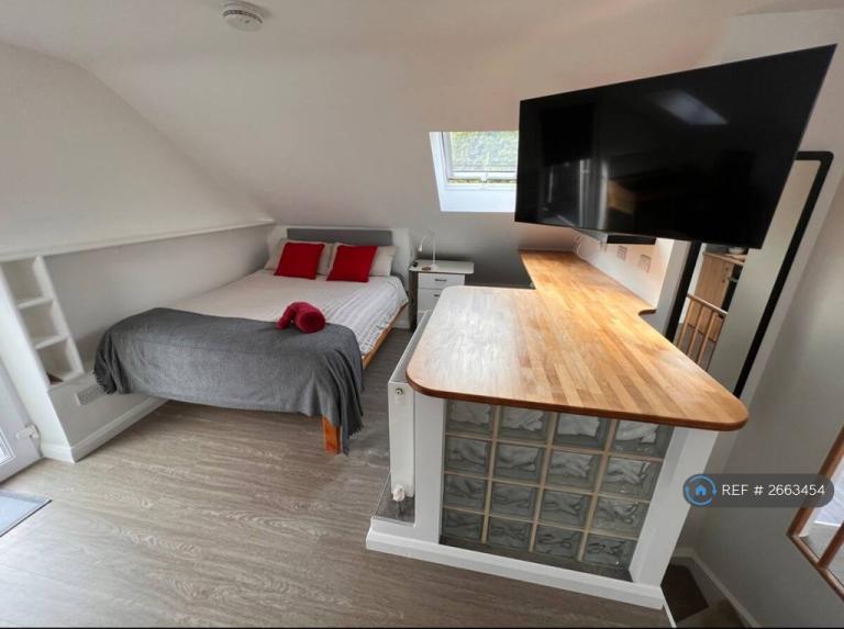 Available on a continuing basis, all bills included. Tree View is a bespoke, self contained annex which forms part a larger house. Having its own off street parking space including a private garden space (5m2). The suite is complete with full Bathroom. There is a fully functional kitchen/diner and open plan lounge area, king sizes Matress with private WC, bathroom with full length bath and powerful shower. It is cleverly designed to get the best use out of the space. This space is suitable for one occupant. Ideal for someone who is purchasing a house and needs a short term solution. We are looking for clean, quiet, respectful tenants.
