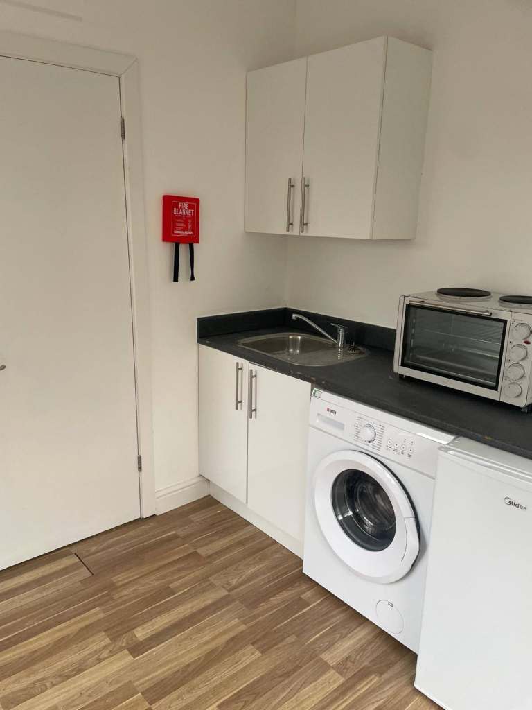 Fully self contained studio flat, equipped with shower room, kitchenette, cooker oven, washing machine, fridge freezer. Newly decorated.
