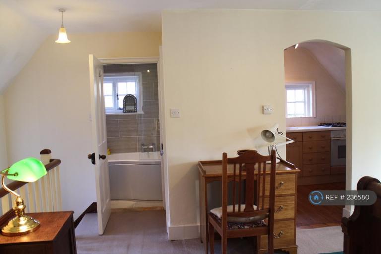 Spacious fully furnished newly decorated first floor studio/living/bedroom with separate fitted/equipped kitchen/diner and recent fitted ensuite bathroom in historic country farmhouse set in rural landscape. About 7 miles south of Farnham, Surrey. Approx. 30 sq.m./300 sq ft. plus extra storage available. Separate entrance and parking. Pleasant, quiet, secure surroundings. Central heat, power and wi-fi included. Smoke alarm and fire extinguisher. Nearby convenience shopping. Town centre 1mile. Own car essential.Â