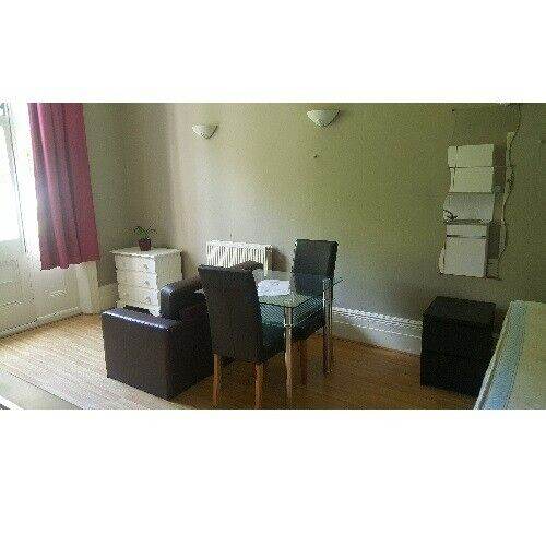 Spacious double semi-studio flat situated on the raised ground floor of a Victorian conversion in a quiet residential tree lined street providing comfortable, clean and convenient accommodation for professionals or students. Lots of original features such as a fireplace, high ceilings and large original French windows and private balcony.