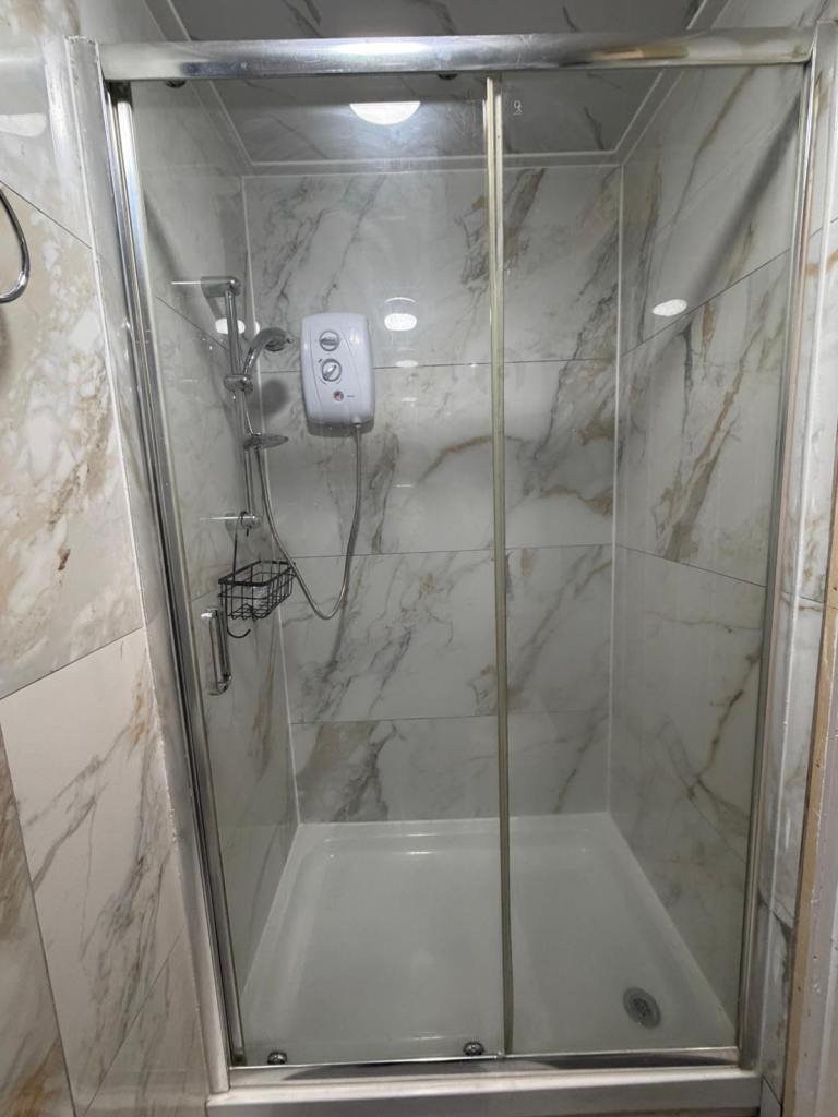 The studio offers a private kitchen with a living/dining area, a separate bedroom, and a modern shower room. It comes fully equipped with a washing machine, cooker, and fridge, providing comfortable and practical living.