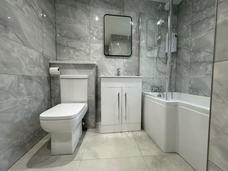 Bathroom (2.4m x 1.5m) Newly Fitted with a shower bath benefiting from both options of having a soak to having a quick wash.