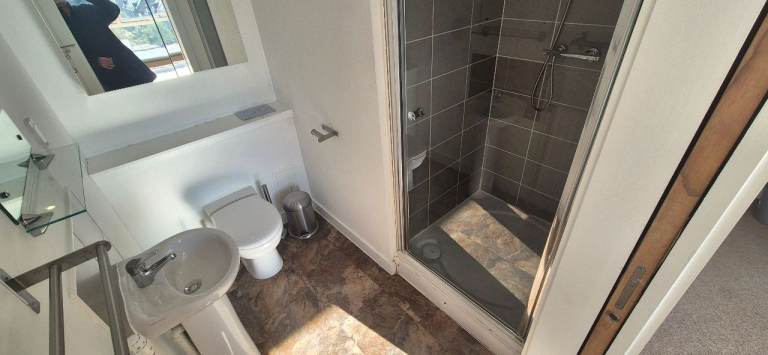 Open plan living room and kitchen, Two bedrooms with Ensuite in Master bedroom. Hallway Cupboard, 4rth floor position with balcony, Residents bike shed, Private Parking, Secured entry with lift