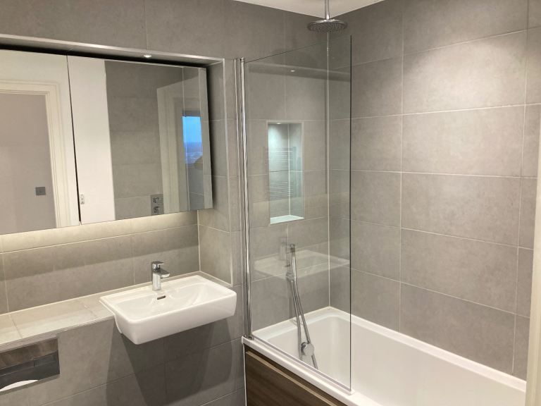Views New Build Quality Lift 1 Bed Bath Rain Hand Shower Open Plan Balcony VeryNearRailBusShops