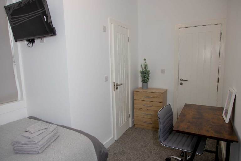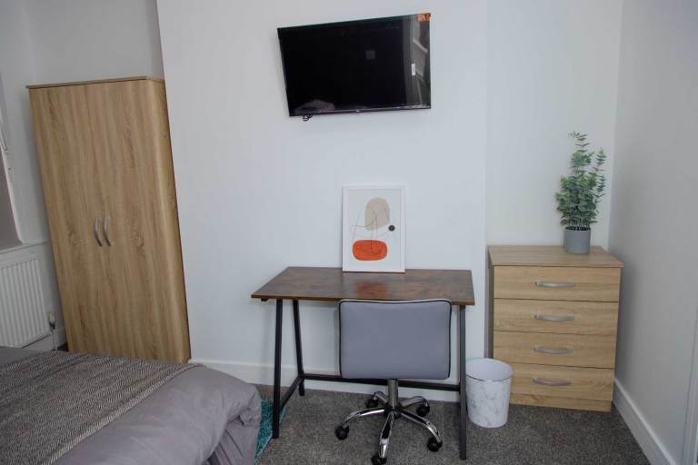 We are one of the only companies that fully kit out our units from a television down to plates and knives and forks. The idea is that you arrive with your bag, towels and bedding, everything else is provided. The rooms include full broadband and hardwired WI-FI connection, double bed, wardrobe, desk, chair, bedside cabinet and a chest of drawers.