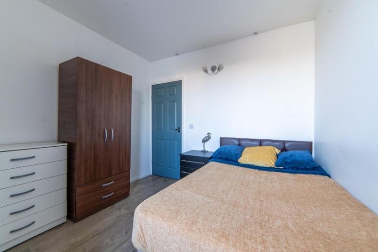A modern and spacious double room with a private balcony facing the River Lea, available now in a stylish 4-bed, 2-bathroom apartment. Ideal for a working professional looking for comfort and great transport links.