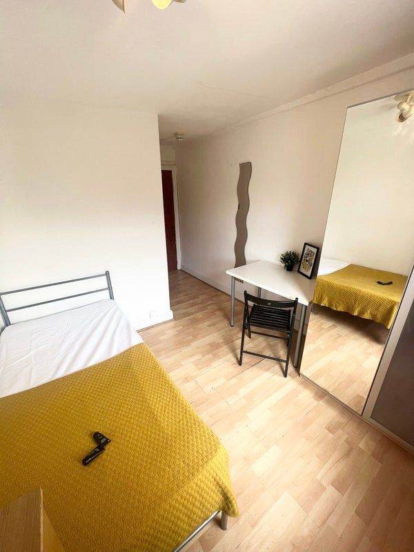 Spacious single room to rent in a well-kept shared flat in White Hart Lane. The room comes fully furnished with a single bed, wardrobe, desk, and good natural light throughout.