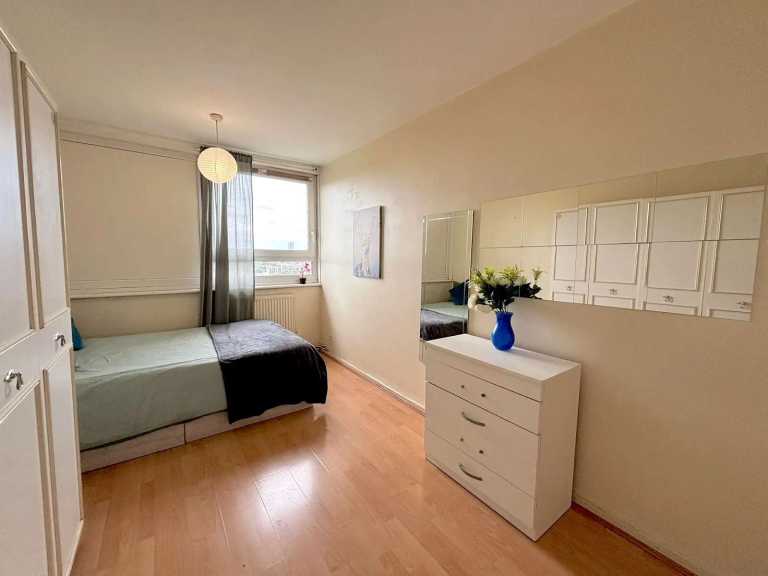 Spacious double room to rent in a well-kept shared flat in Canary Wharf. The room comes fully furnished with a double bed, wardrobe, desk, and good natural light throughout.