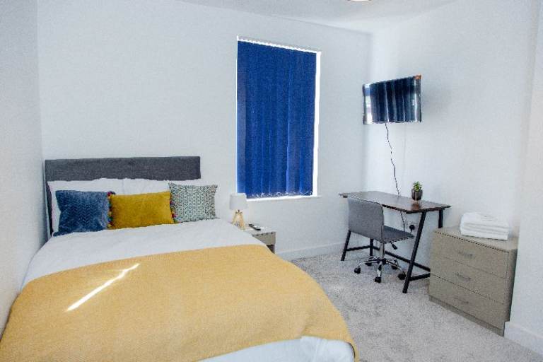 Fully furnished rooms (double bed, wardrobe, desk & chair)