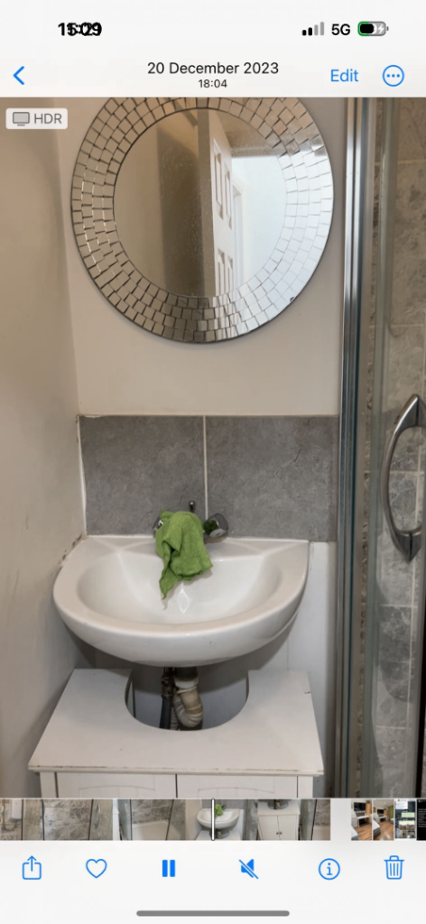 Bedroom has its own fridge freezer, bed, wardrobe, bedside draw, table, tv and iron.