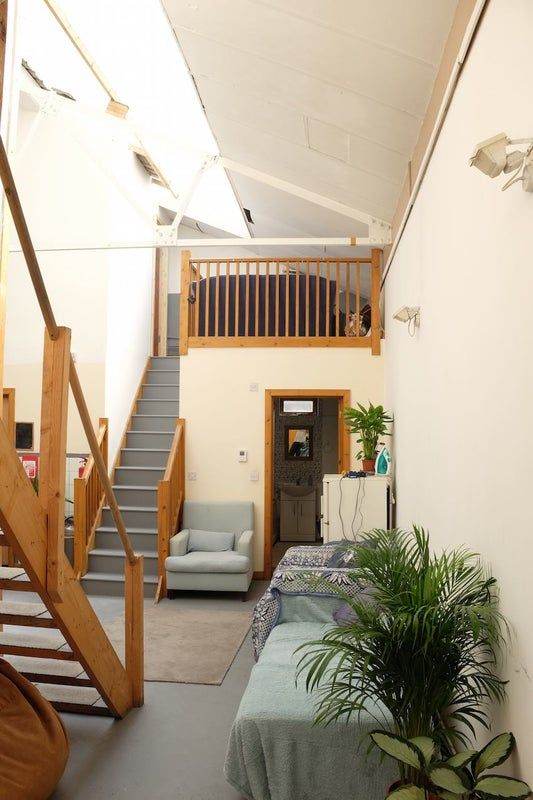 This lovely large open converted warehouse has 6 room. 5 rooms share 1 large bathroom with shower , bath and basin. 1 room has ensuite (not the one to let)