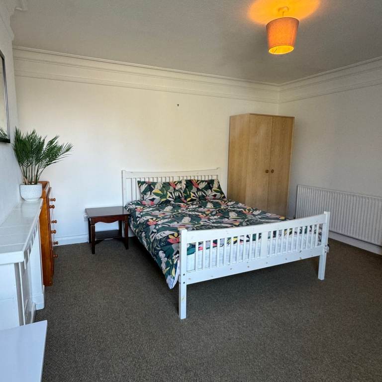 A gorgeous sized double room available to rent in a shared flat. Lovely fireplace feature, bright window all fully furnished with new mattress on king sized bed, wardrobe, drawers and desk.